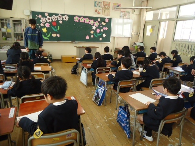 明日の1年生を迎える会でのあいさつの練習もしました。