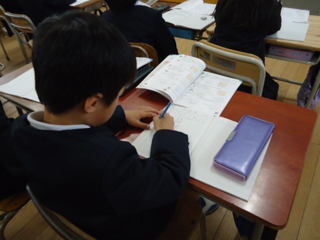 きまりをどのように説明するのかが難しいところですが、上手に数を分解して答えを導いていました。