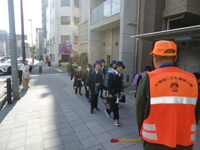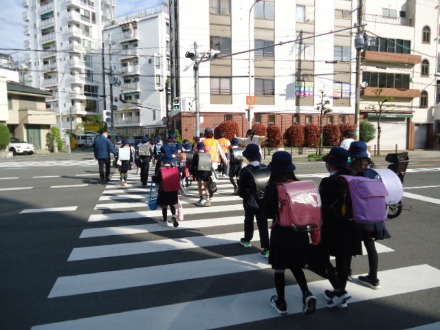 今年度初めての登校指導・PTA交通安全指導の日です。