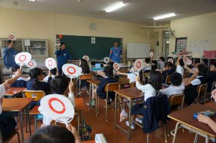 6時間目はごみの分別についての授業でした。3R(リデュース・リユース・リサイクル)についての話を真剣に聞いて、最後の〇×クイズでは多くの子どもが全問正解することができていました。