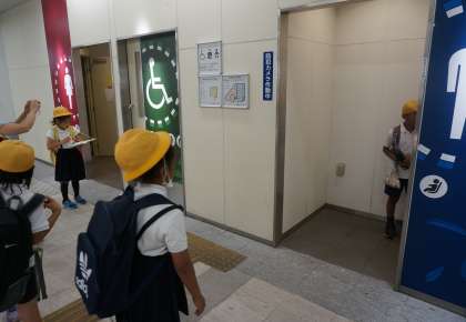 帰り道のJR芦原橋駅構内では、私たちの身近にあるユニバーサルデザインを探しました。