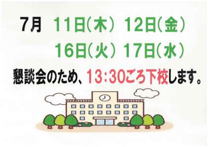 7月 11日・12日・16日・17日は、期末個人懇談会のため、下校時刻が変更になります。