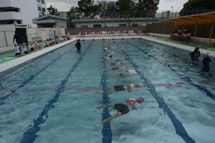 ペットボトルを使って体を浮かす方法など、いざという時の対処法を学習しました。