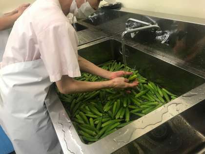 たくさんのオクラも、調理員さんがきれいに洗ってくれています。