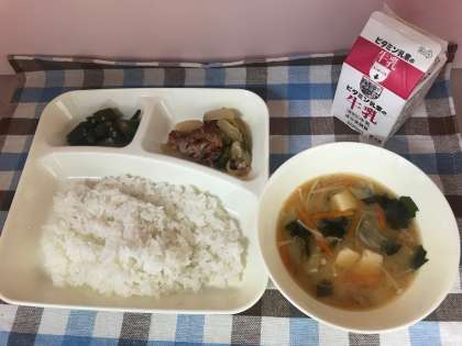 9月19日今日の給食は、「ごはん、牛乳、豚肉の甘辛焼き、みそ汁、オクラのおかかいため」です。