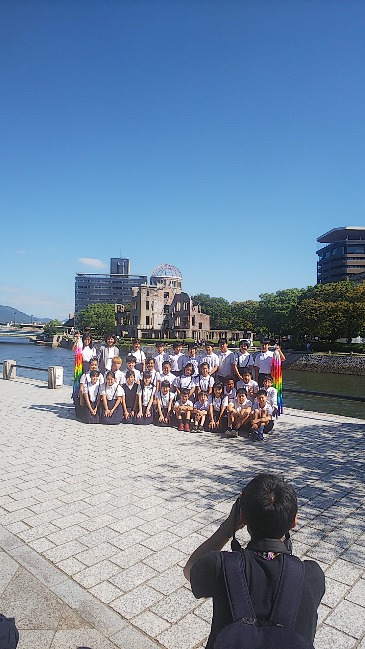 原爆ドームをバックに記念撮影。