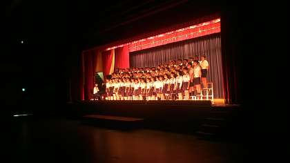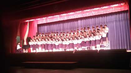 5・6年生がパートに分かれ、リコーダー二重奏「シンクロBOM-BA-YE!!」と合唱「空高く」の発表をしました。練習の成果を存分に発揮できました。