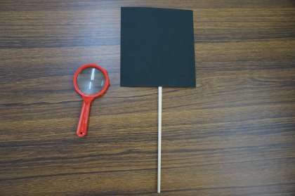 虫メガネを使って、光を集めて紙の様子がどうなるかを実験しました。