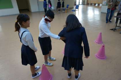 4年生はゲストティーチャーをお招きして、アイマスク体験をしました。