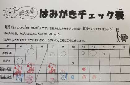 毎月8日は「歯の日」として、歯磨きチェックをおこなっています。