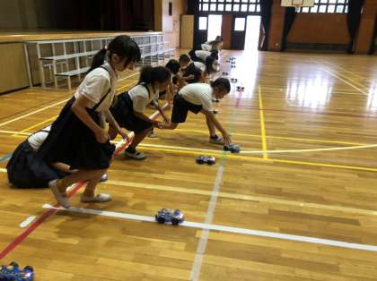 自分の作った車が走り出すとみんなうれしそうに追いかけていました。