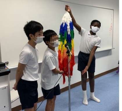 全校で力を合わせて作ったおりづるを、6年生が一つにまとめてくれました。