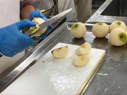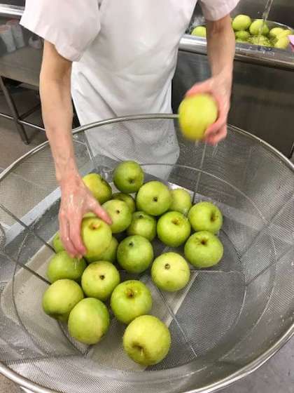 二十世紀なしは、ひとつひとつ皮をむいて芯をとって食べやすくしています。