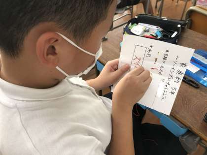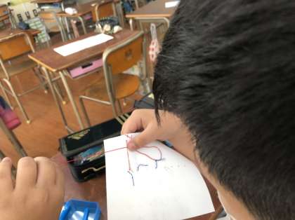 早くできた人は、星マークやハートマーク、お家の人の名前にチャレンジしていました。