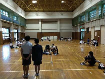 雨天のため体育館で