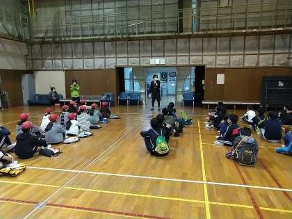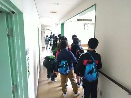 部屋に入り、着替えた後に避難訓練をしました。お家ではない場所での生活に気持ちを高めることができました。