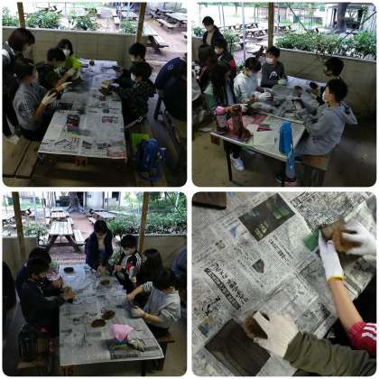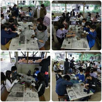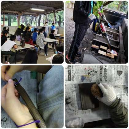 活動センターの方に教えていただきながら、焼き板づくりがスタートしました。