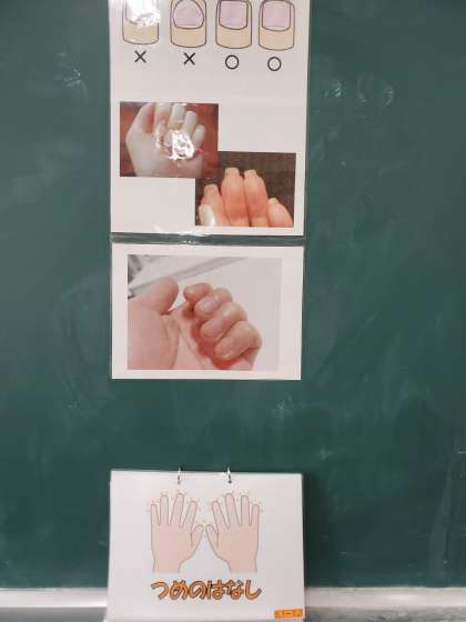 今日は、みなさんが安全に競技や団演に参加できるようにつめが切れているか保健委員会の人がチェックしてくれました。