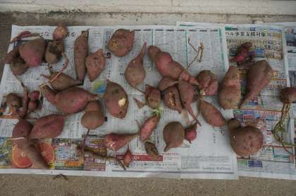1年生にも収穫体験をしてもらうために学習園の半分を残しておいもほりをしました。