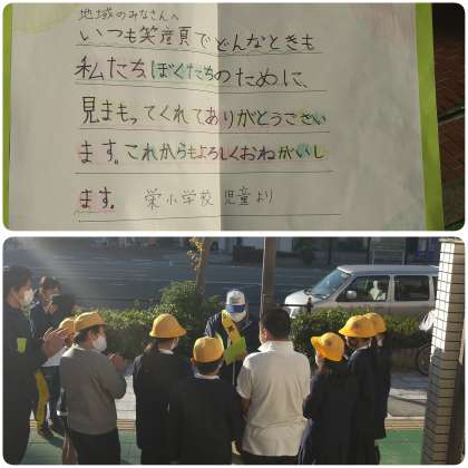 例年は地域のみなさんを朝会にお招きし「感謝の気持ちを伝える会」を行っていましたが、今年度は6年生が代表して、感謝の気持ちが詰まった「お手紙」をお渡ししました。