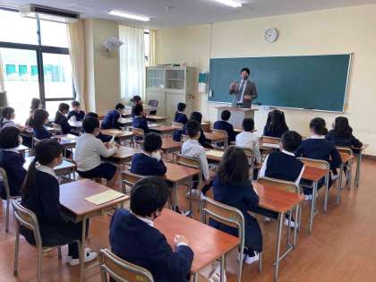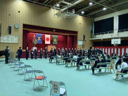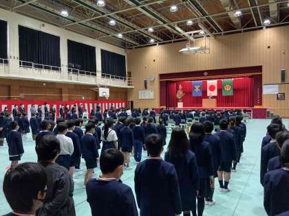 たくさんの教職員が並びます。先生たちのお名前は覚えられたかな?