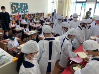 1年生の食べられる量を考えて配膳をする姿は、さすがです。
