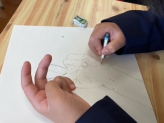 先生の絵に負けないくらい、みんなもがんばってかいていました。