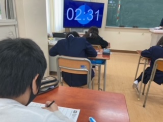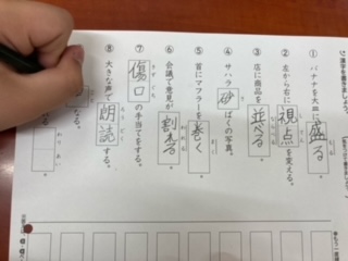 漢字テストを受ける6年生。