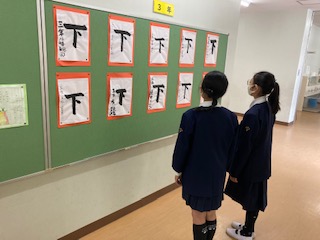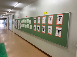 6年生が3年生の習字を見てつぶやき。 「私らより、うまいなあ。」 「まいりました。」