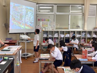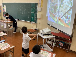 道徳です。 ルールを守っていない場面を探して、 発表しています。 たくさん見つけられたね。