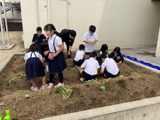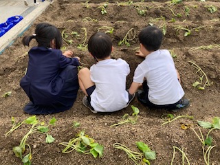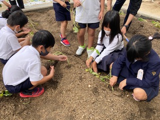 学習園にサツマイモの苗を植えました。