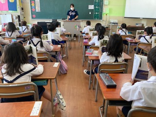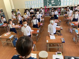 授業の始まりのあいさつのピシっとした姿。