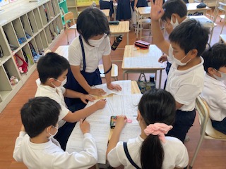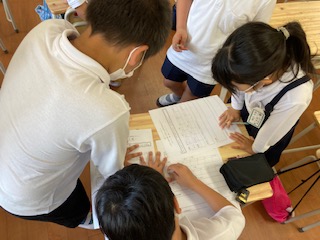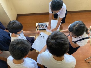 教室で、リレーの作戦会議中。 いよいよ最終戦です!