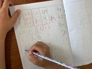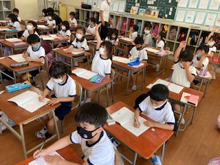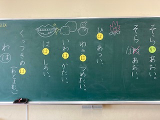 「は」の学習です。 体操服を着ている理由は、 この後の体重測定のためです。