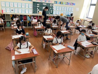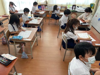 席が、後ろのロッカーぎりぎりまで下がっています。
