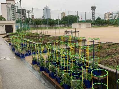 でも見方を変えてみると・・・1年生が育てているアサガオ、2年生が育てているミニトマトなどにとっては、めぐみの雨です。