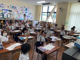 手を挙げるときは挙げる! 書くときは書く! すばらしい!!