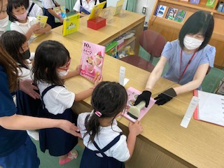 図書 公開日 2021/06/23 更新日 2021/06/23 1年生 「ありがとうございます!」 借りていた本を返すときと、 新たに本を借りるときに、 学校図書館コーディネーターさんに、 バーコードを読み取ってもらいます。 みんなお礼が言えてすごいなあ。 参観で見てもらいたかったー! いいね(0)
