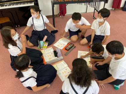 今日から合奏をします。 話し合いで楽器の担当が決まったら練習をします。
