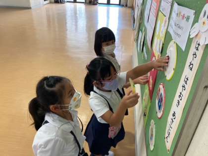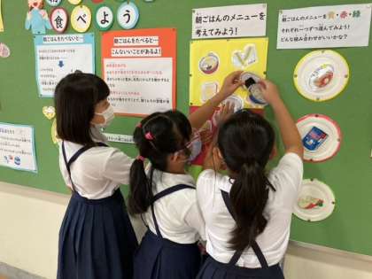 はやね はやおき あさごはん 公開日 2021/09/15 更新日 2021/09/15 2年生 休み時間に2年生が、給食の掲示板で何やら作業。 黄・赤・緑から1つずつ選んで朝ごはんの完成! いいね(0)