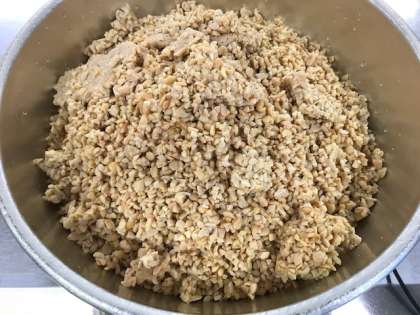 今日のツナ大豆そぼろは、ツナとひきわり大豆をいため、砂糖、しょうゆなどで味つけした、ごはんによく合う一品になっています。