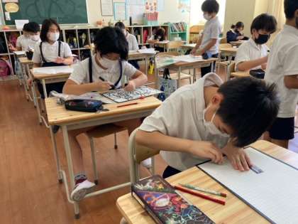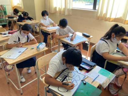 ステンドグラスに挑戦しているのは4年生です。