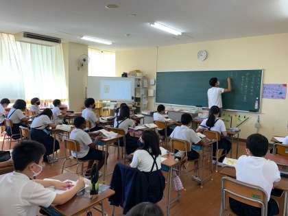 10:57 5年生の教室をまわると1組も2組も国語科「注文の多い料理店」の学習中でした。