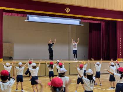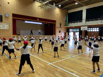 今日も1、2年生はノリノリで練習中です。中にはとってもかわいい振り付けもありますよ。