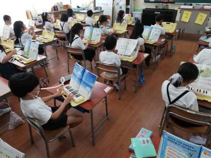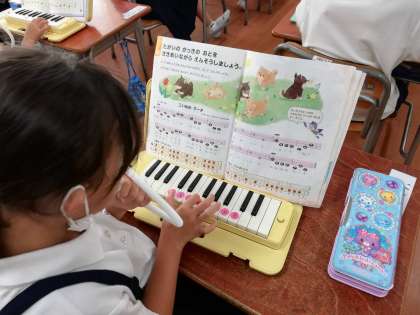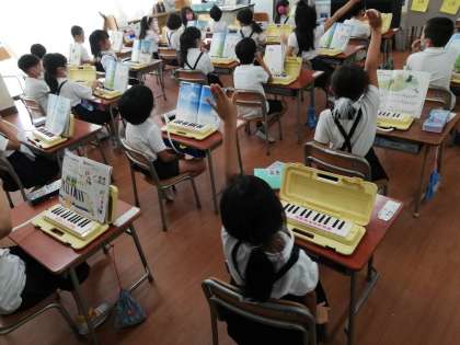 1年生は、はじめてのけんばんハーモニカにチャレンジ!!