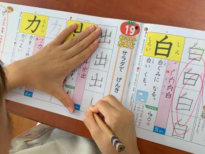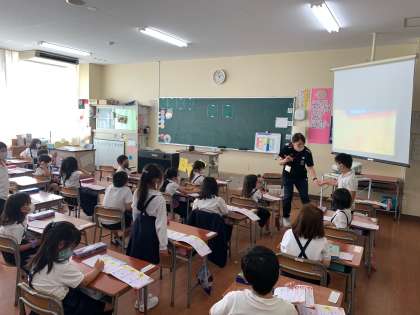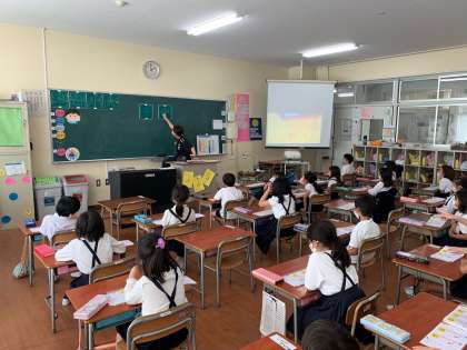 『出』を使った文を子どもたちに聞くと、いろいろな例文が出てきました。中には、実力を出すなど、難しい表現を使って発表している児童もいました。入学から約半年が経ちました。