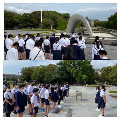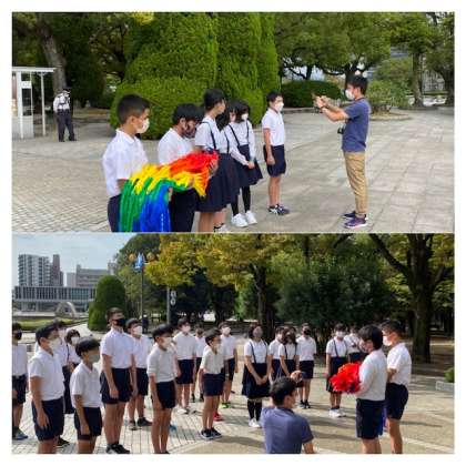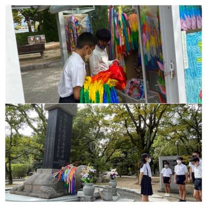 10:35 平和集会 公開日 2021/10/13 更新日 2021/10/13 6年生 原爆ドーム、原爆の子の像、韓国人原爆犠牲者慰霊碑、 原爆死没者慰霊碑の4か所で、平和集会をしました。 栄小学校のみんなで折った千羽鶴を捧げました。 いいね(0)