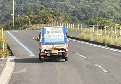 バスの前を、トラックでお出迎え!?