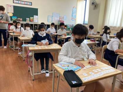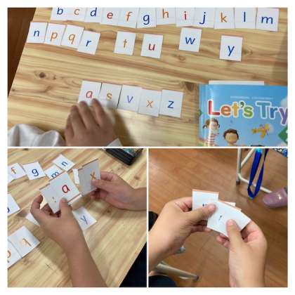 今日は、アルファベットカードを使って。