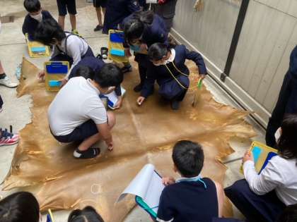 実際に太鼓に使われる皮の検品作業をさせてもらうことができました。